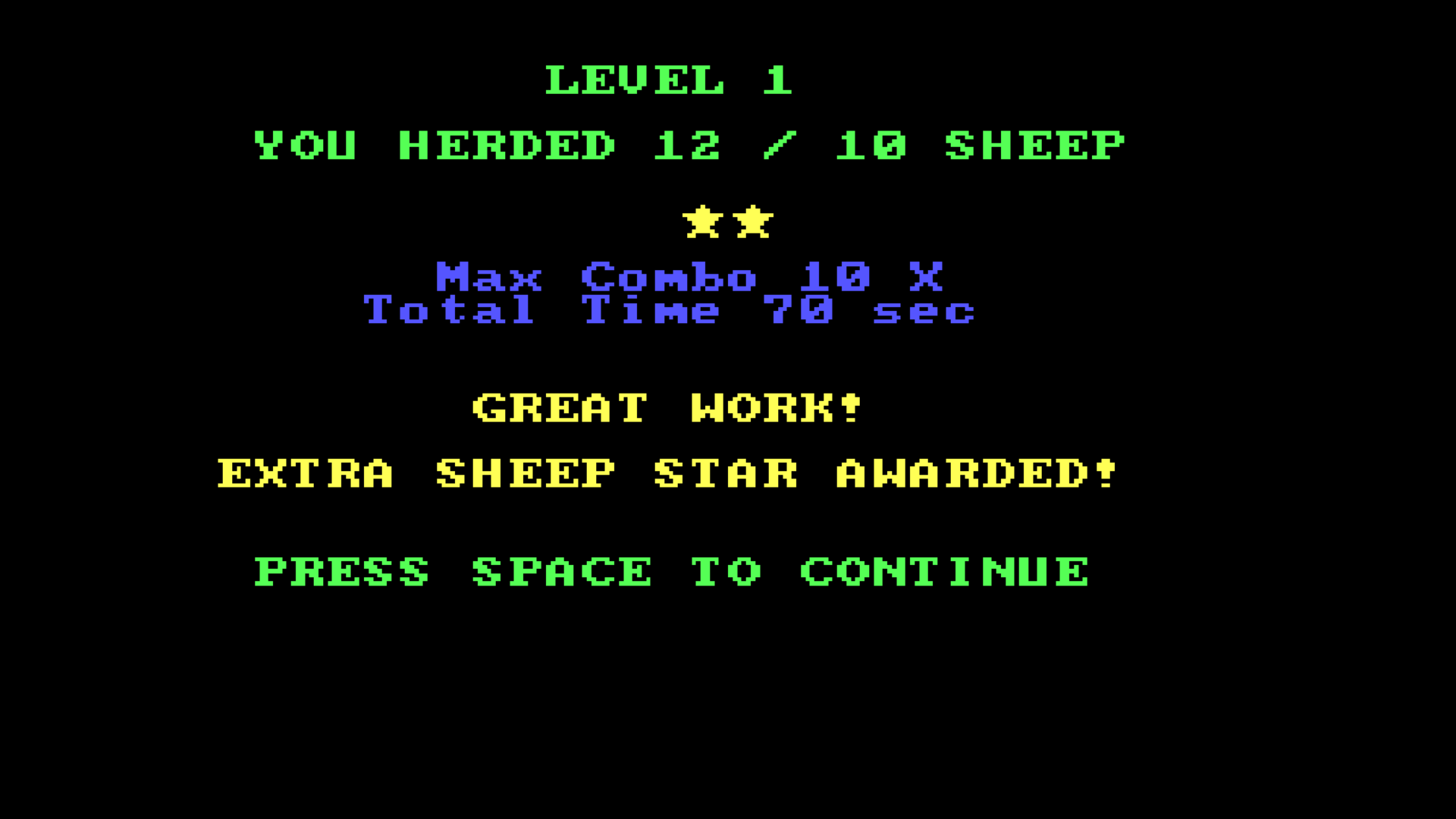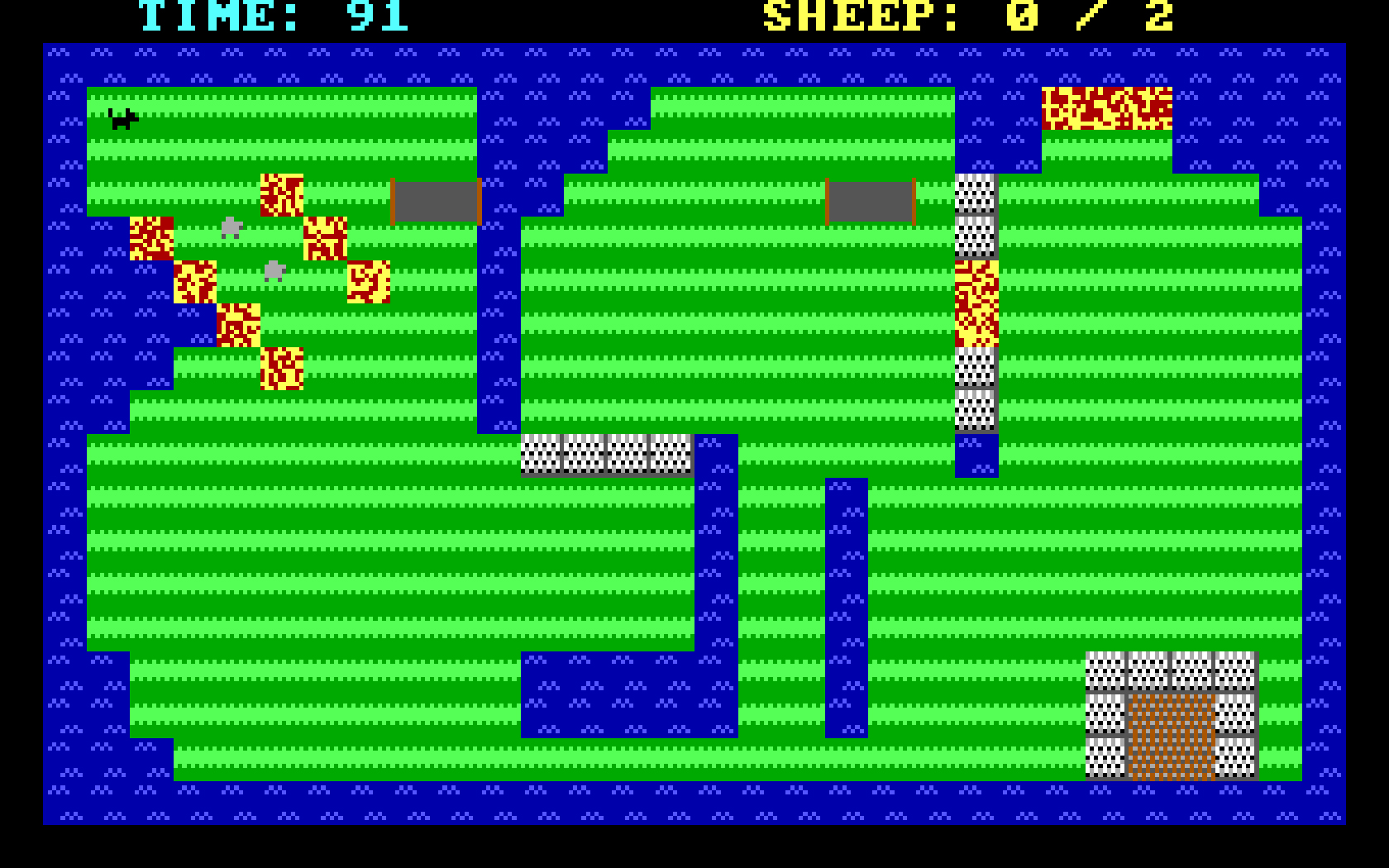 Lighthearted puzzle game where you take on the role of a loyal collie, herding idiotic sheep through a variety of hazards (water, sand, spike traps & rolling crushers - you know, the usual stuff). In each level you are tasked with herding a certain number of sheep to the safety of their pen. Be careful: Sheep have no sense of self preservation and they'll frequently kill themselves.